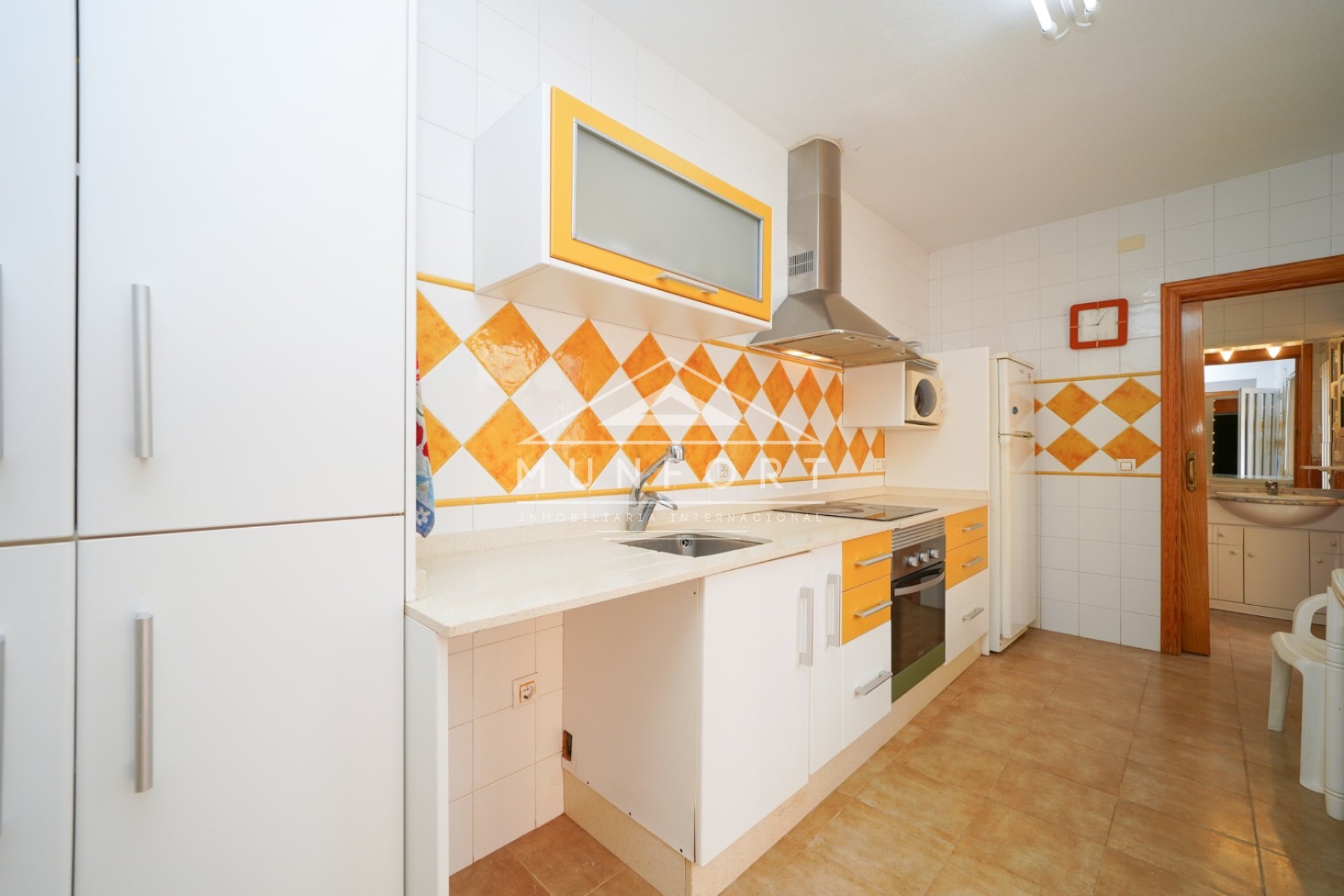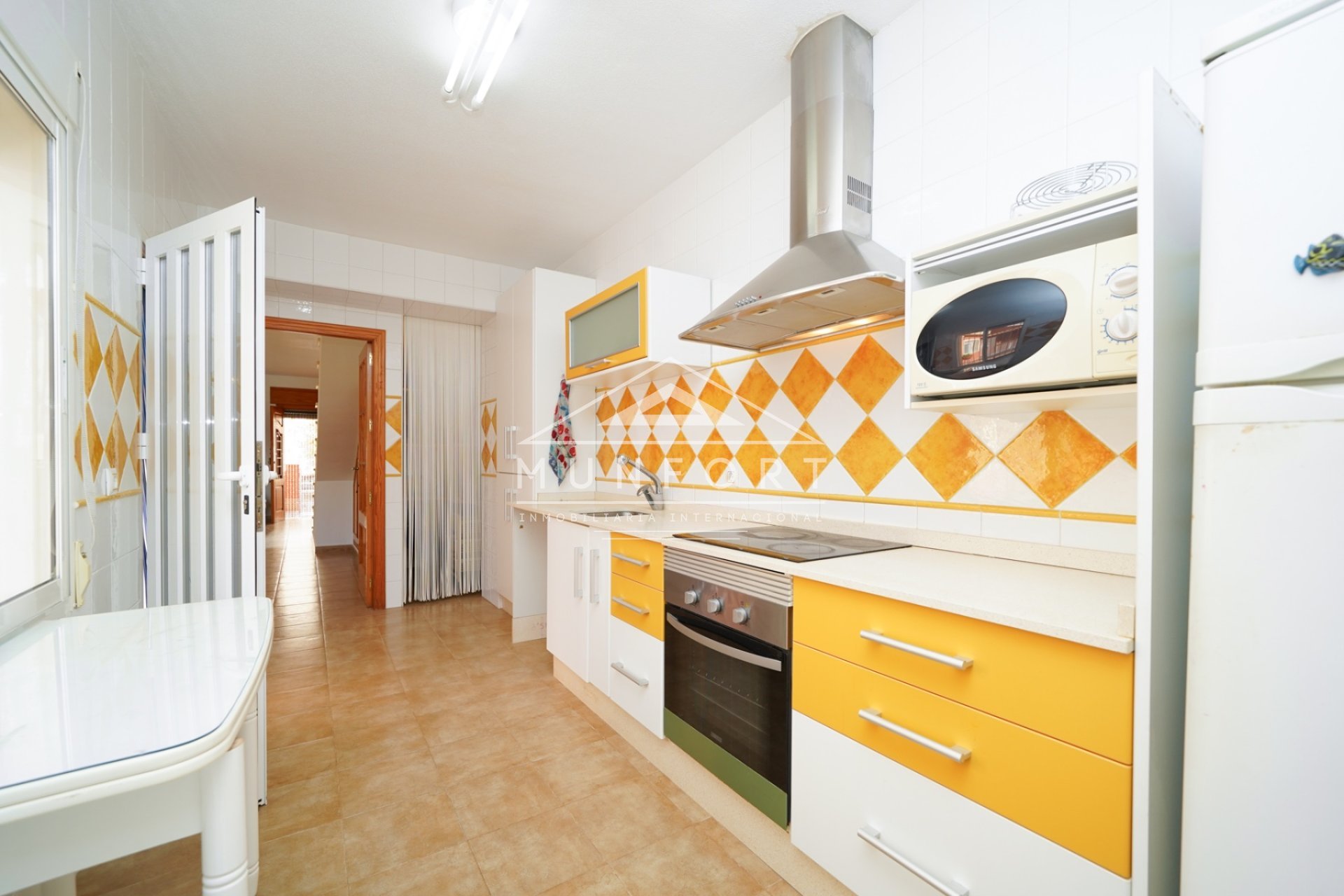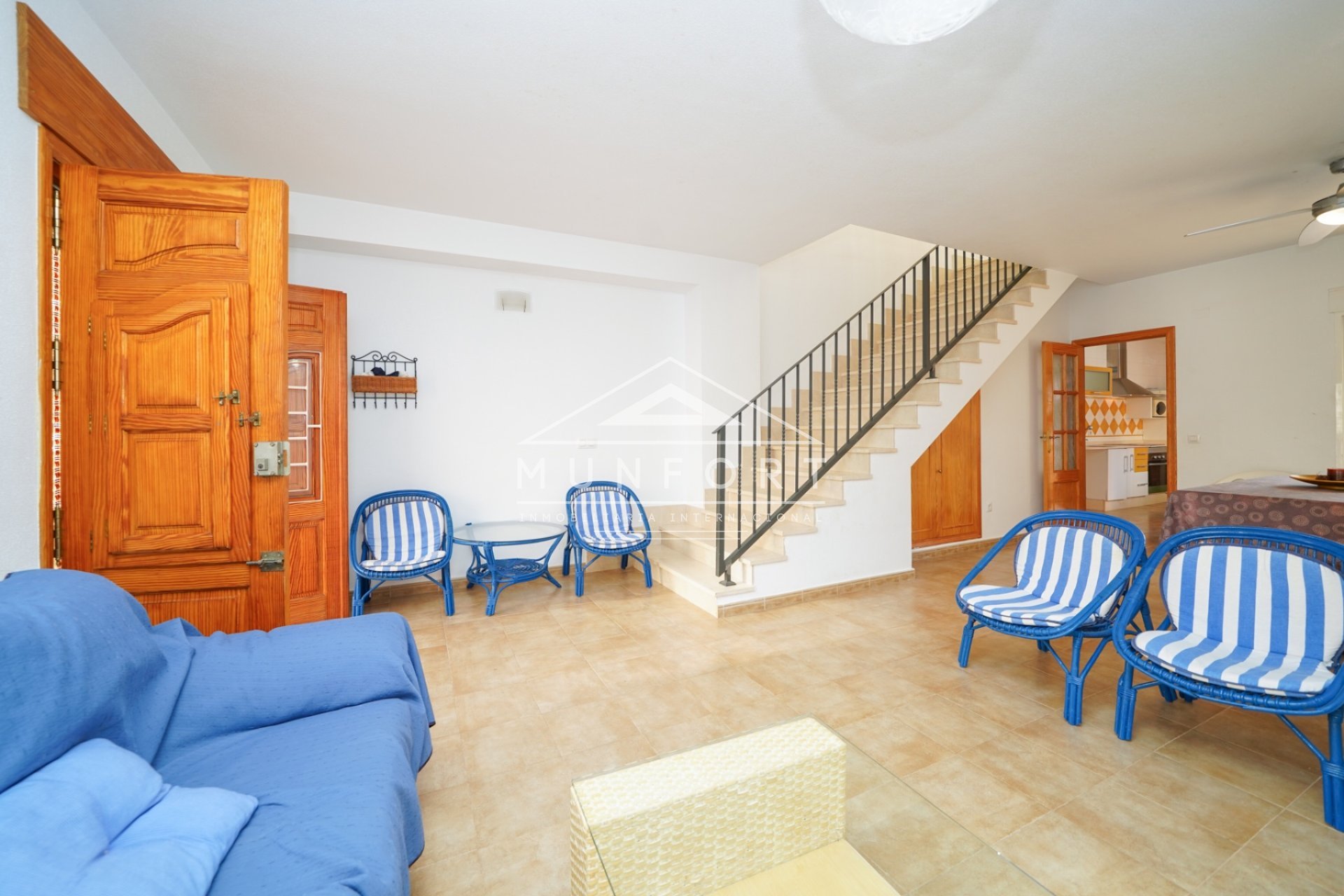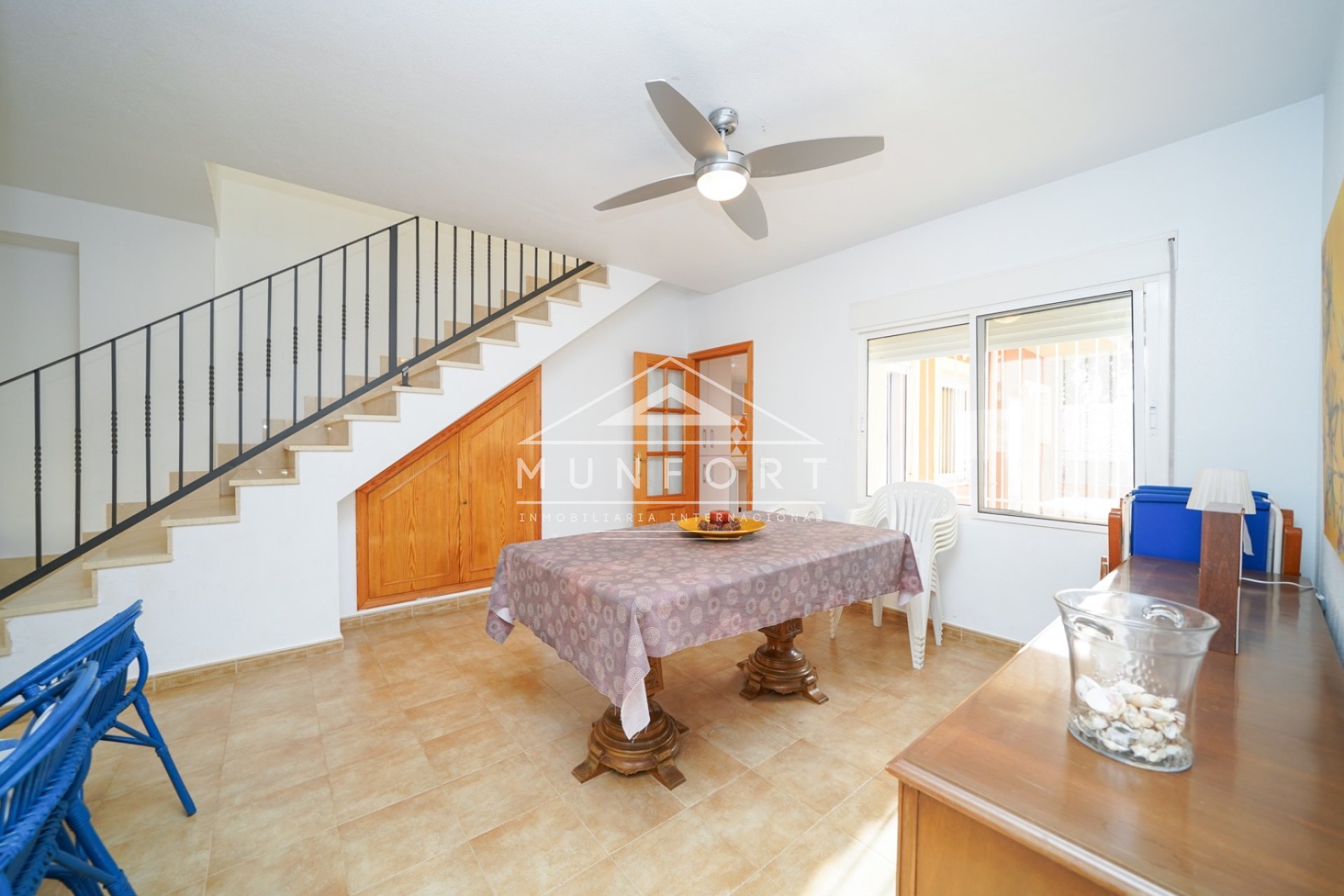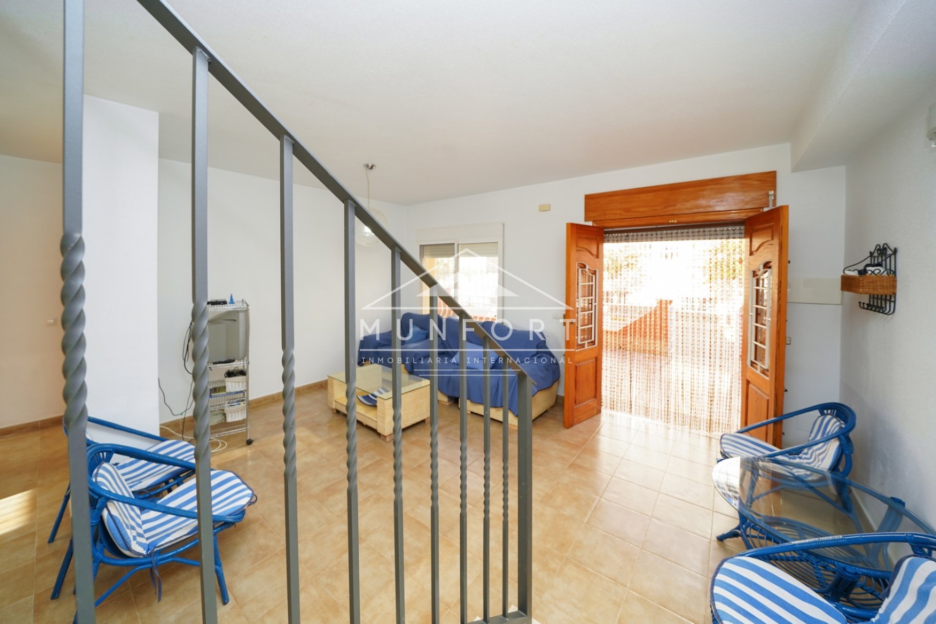 Dieses attraktive und funktionale Reihenhaus in Los Urrutias liegt in zweiter Strandlinie und bietet Raum zum Entfalten. Im Erdgeschoss: großzügiges Wohnzimmer, Küche mit Vorratsraum, Bad, zwei große Schlafzimmer und Patio mit Zufahrt. Im Obergeschoss: zweiter Salon mit Terrasse, drei Schlafzimmer mit Einbauschränken und Bad. Erweiterbar um eine zusätzliche Etage mit Zimmer und Balkon. Strand nur 50 m entfernt, mit Meer- und Bergblick.