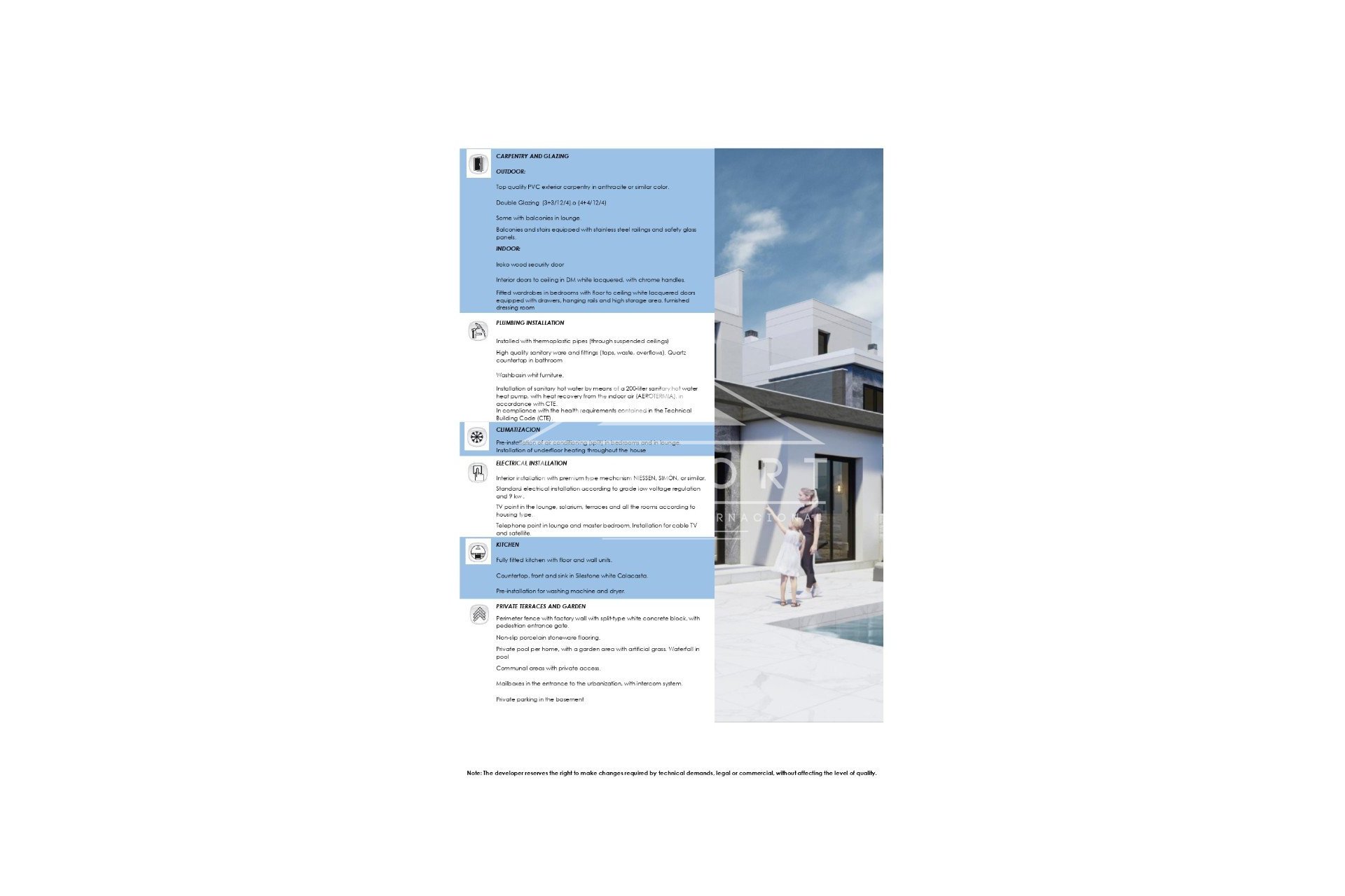 Wunderschöne VILLA mit 3 Schlafzimmern und 2 Bädern. Es verfügt über einen privaten Swimmingpool mit Kunstrasen Gartenbereich und Wasserfall Jet. Die Gemeinschaftsbereiche sind privat und eingezäunt, mit begrenztem Zugang zum Parkplatz. Die Küche ist offen und voll ausgestattet mit weißer Silestone-Arbeitsplatte, Front und Spüle, Wand- und Unterschränken. Außerdem gibt es eine Vorinstallation für Waschmaschine und Wäschetrockner, eine Vorinstallation für die Klimaanlage und eine Fußbodenheizung in der gesamten Wohnung. Privatparkplatz im Untergeschoss.