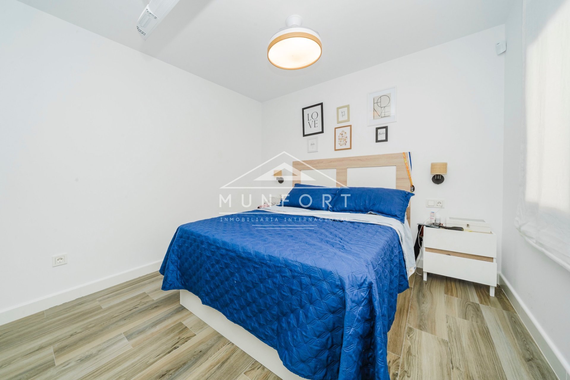 La vivienda cuenta con dos dormitorios, ambos equipados con armarios empotrados, ventiladores y aire acondicionado, lo que garantiza comodidad durante todo el año. Dispone además de un baño completo con acabados modernos.