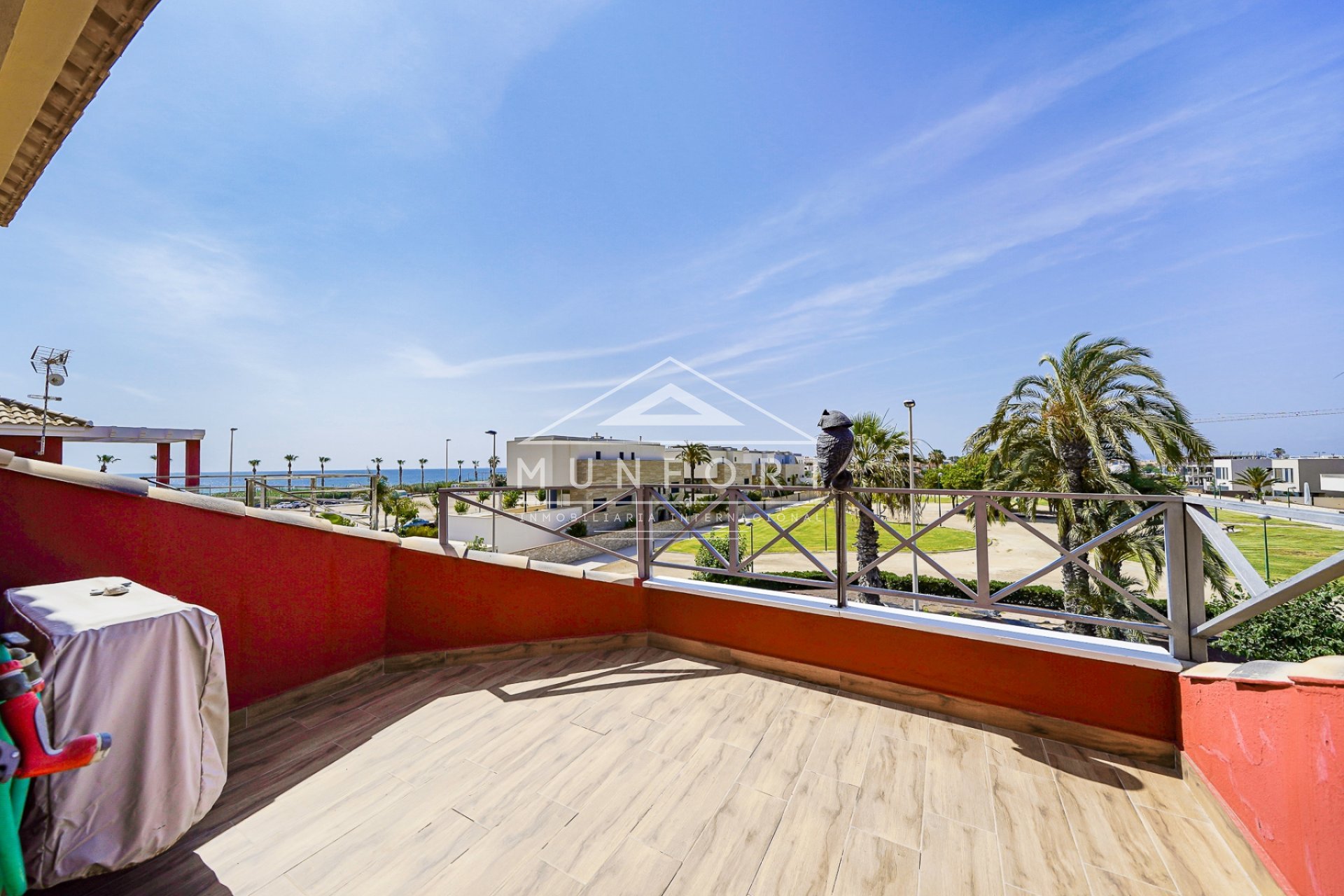 Située à deux pas de la Playa Las Higuericas, cette maison vous enchantera par sa disposition et son emplacement. Vous entrez et directement sur votre droite, la piscine et la terrasse ombragée. Vous accédez au salon-salle à manger avec air-conditionné meublé et décoré avec goûts. Sur la droite du salon, vous avez la première salle de bains avec douche, vient ensuite a première chambre avec armoires incorporées. La cuisine entièrement équipée donne sur une très grande terrasse à l'arrière de la maison. Cette terrasse avec coin cuisine extérieure, espaces de rangements et un toît rétractable, est idéale pour passer de superbes soirées entre amis ou en famille, mais également un espace supplémentaire oú il est agréable de passer du temps lors des soirées d'hiver. Au premier étage, outre la salle de bains avec baignoire, deux chambres avec armoires incorporées et la quatrième chambre avec sa terrasse privative. Depuis cette terrasse, vous avec vue sur le parc situé en face et sur votre gauche, vous avec VUES SUR LA MER toute proche. Au second et dernier étage, la cinquième chambre avec accès direct au solarium, disposant d'une toile pour se protéger des rayons du soleil. Depuis le solarium, VUES SUPERBEES sur la mer. Cette maison est parfaite pour les grandes familles, pour y vivre à l'année ou pour y oasser de superbes vacances. Une visite et vous serez sous le charme de cette maison .... N'hésitez pas à nous contacter pour plus d'informations ou pour réserver une visite. Bien entendu, si vous ne pouvez pas vous déplacer, nous pouvons organiser des visites virtuelles.