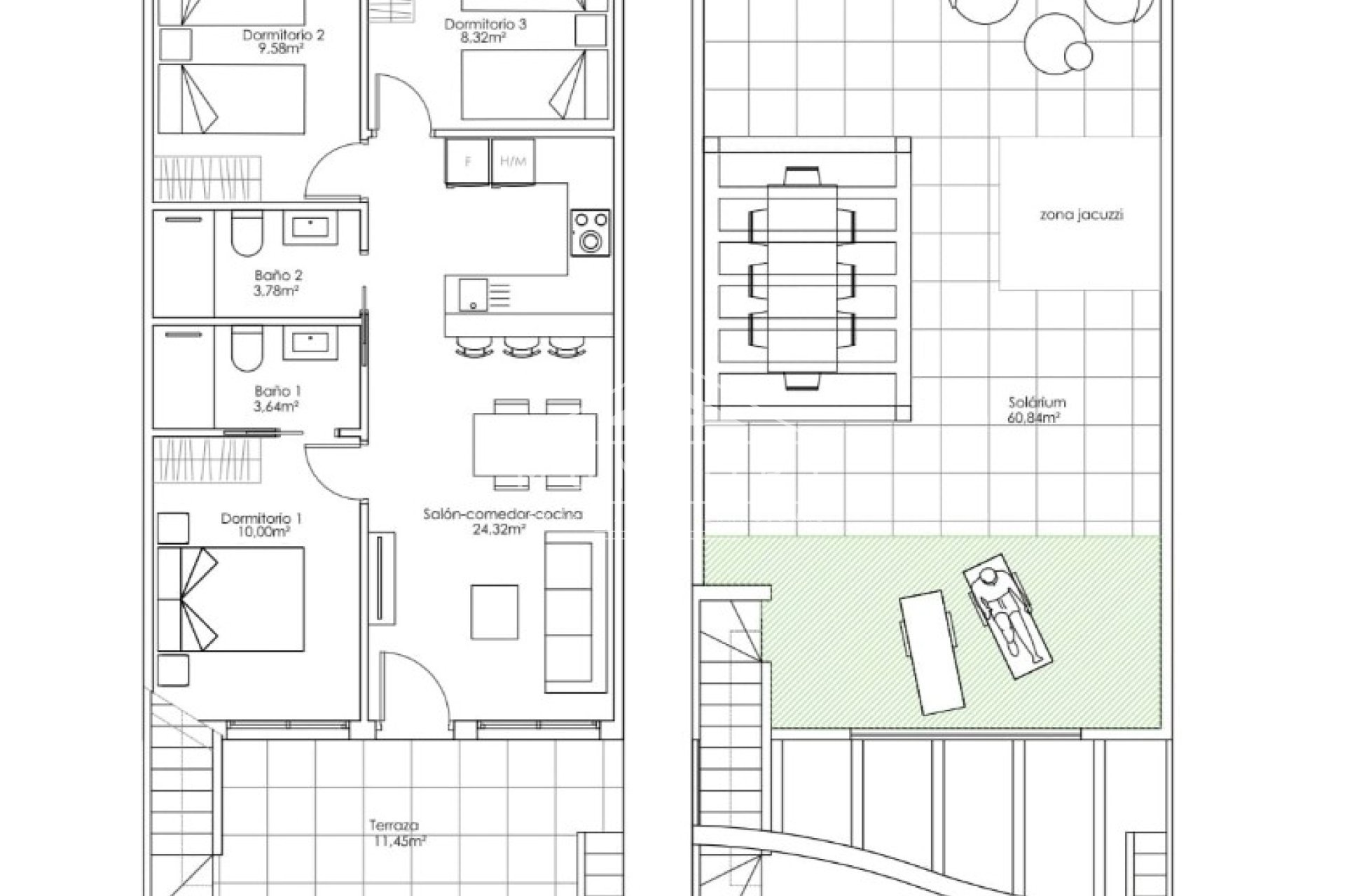 BUNGALOW à l'étage supérieur avec trois chambres et piscine communautaire à PILAR DE LA HORADADA