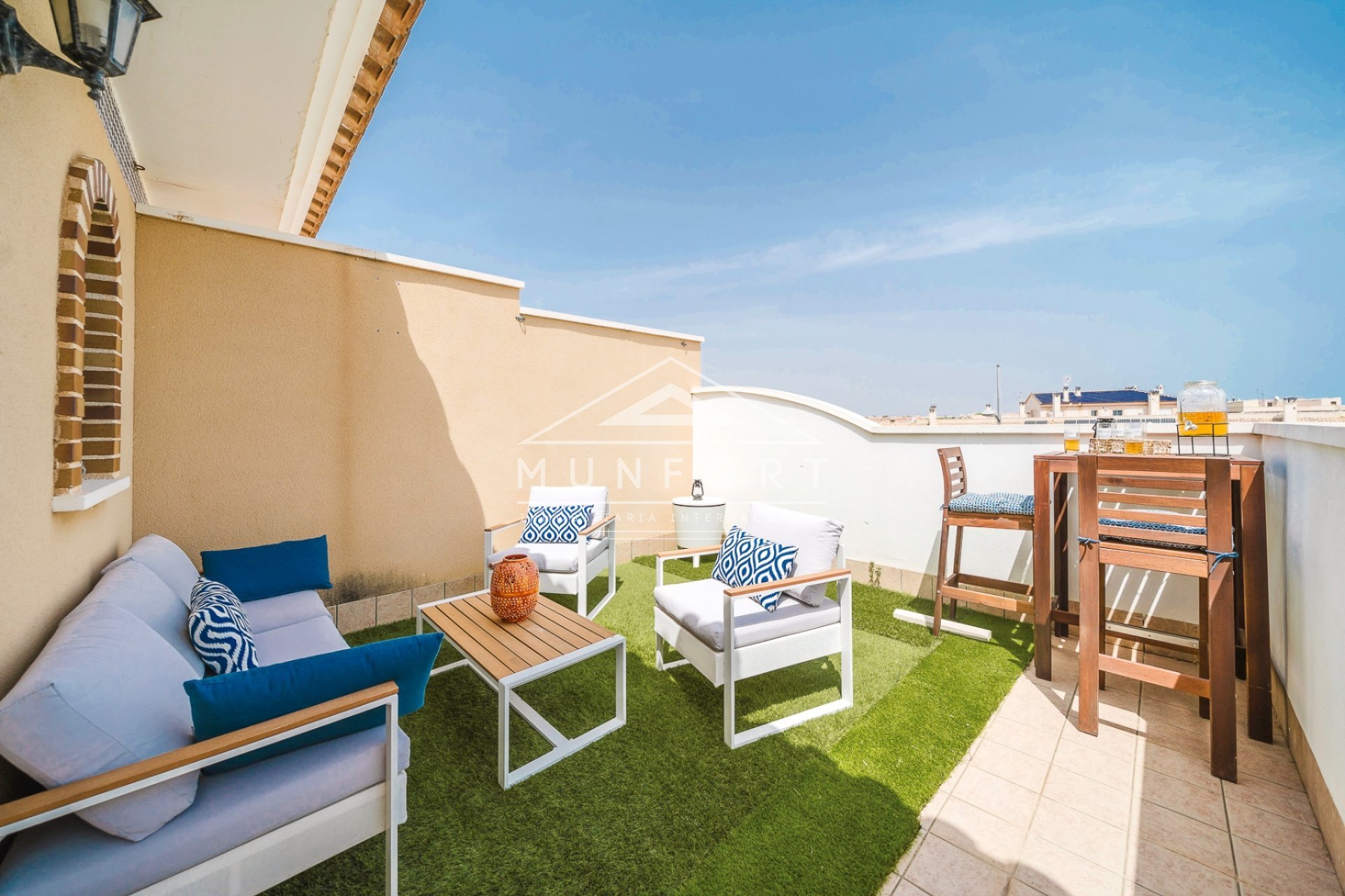 Leter du etter et hjem nær sjøen med all komfort? Torre de la Horadada kan være din ideelle destinasjon! Denne kystbyen på Costa Blanca er svært populær for sine sandstrender, krystallklart vann og familievennlige atmosfære. Den tilbyr alle tjenester du trenger, som supermarkeder, restauranter og butikker i nærheten. Byen har også gode vei- og motorveiforbindelser, samt god tilgang til offentlig transport. Nærmeste sykehus er Universitetssykehuset i Torrevieja (15 km unna), og stedet er godt forbundet med Alicante flyplass (75 km) og Murcia flyplass (40 km).