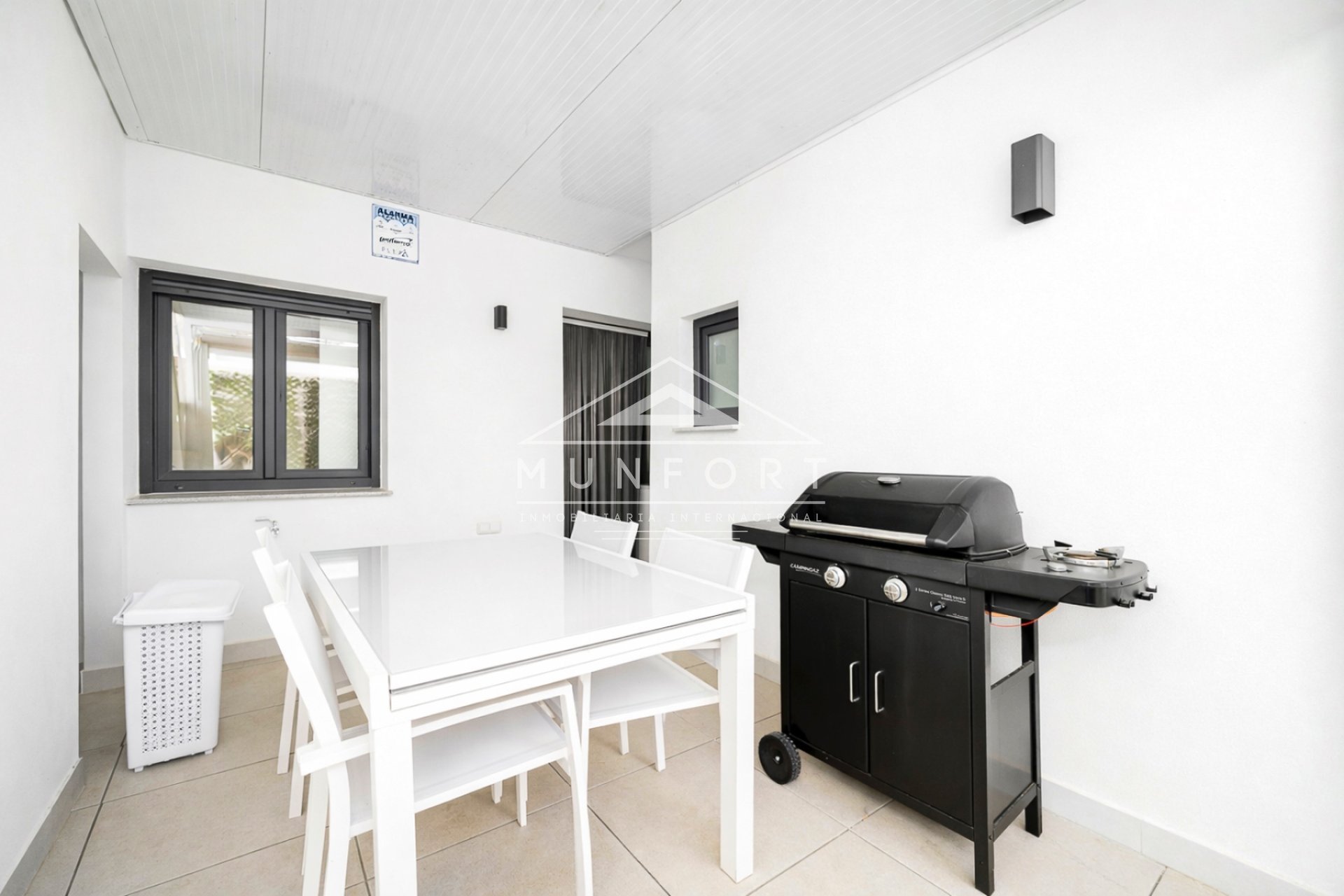 Huset är byggt på en tomt på 105 m² och har en boyta på 84 m² , funktionellt fördelad. Det har en innergård som ger naturligt ljus, samt ett rymligt solarium på cirka 60 m² , perfekt för att njuta av medelhavsklimatet året runt.